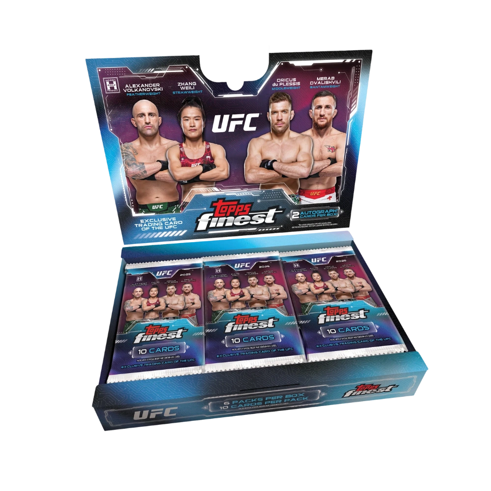 Nach einer triumphalen Rückkehr verdoppelt Topps Finest UFC 2025 alles, was Sammler geliebt haben – und legt noch eins drauf. Das 300-Karten-Basis-Set bietet eine beeindruckende Auswahl an Legenden, Herausforderern und aufstrebenden Stars, belebt durch ein reiches Spektrum an Refraktoren und energiegeladenen Parallelen. Mit zwei Autogrammen pro Hobbybox und brandneuen Spezialkarten ist dieses Finest ein Muss für alle Sammler, die ihre Fighter-Sammlung erweitern oder nach seltenen Karten jagen. Es ist mutig, es ist Chrome, und es ist mit Nachdruck zurück.