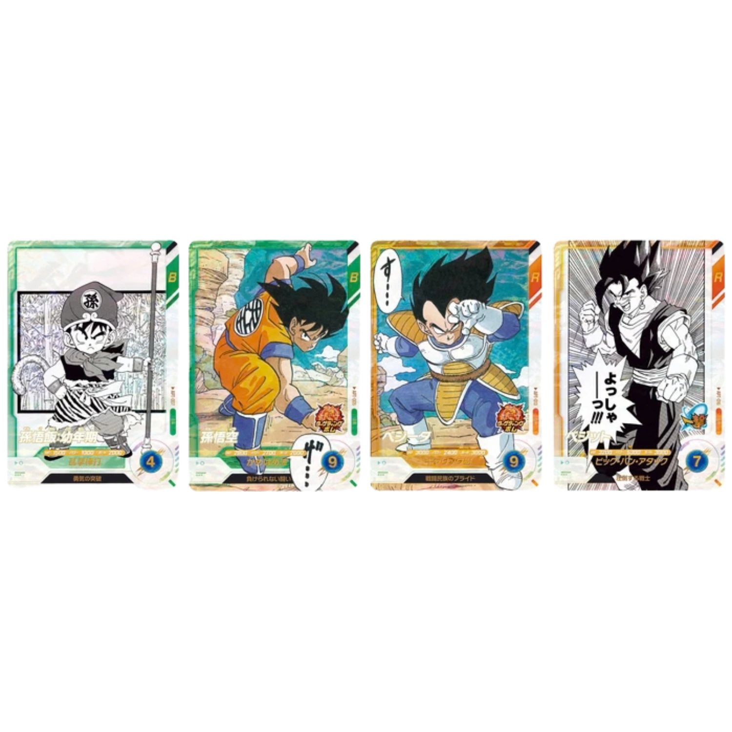 Aber das ist noch nicht alles! Das Sortiment umfasst auch einige auffällige Karten, wie zum Beispiel die „Goku“- und „Vegeta“-Karten, die beide die Aktionsfähigkeit „Zielbombe“ besitzen! Wenn du die Aktion erfolgreich ausführst, fügst du dem Gegner Schaden zu, und wenn du sie perfekt triffst, werden zusätzliche Effekte ausgelöst, die für jede Karte einzigartig sind!
