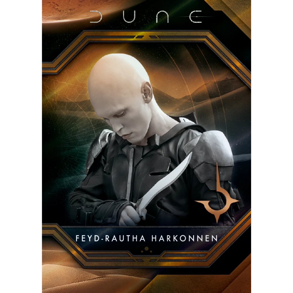 Sammler entdecken zudem eine Vielzahl einzigartiger Inserts, darunter Dune Acrylics und Art of Dune, sowie viele weitere Überraschungen. Das 90-Karten-Base-Set fängt das Wesen der Saga ein, mit 35 Rollen aus Dune: Teil Eins und Teil Zwei sowie 65 beeindruckenden Szenen aus Dune: Teil Eins.