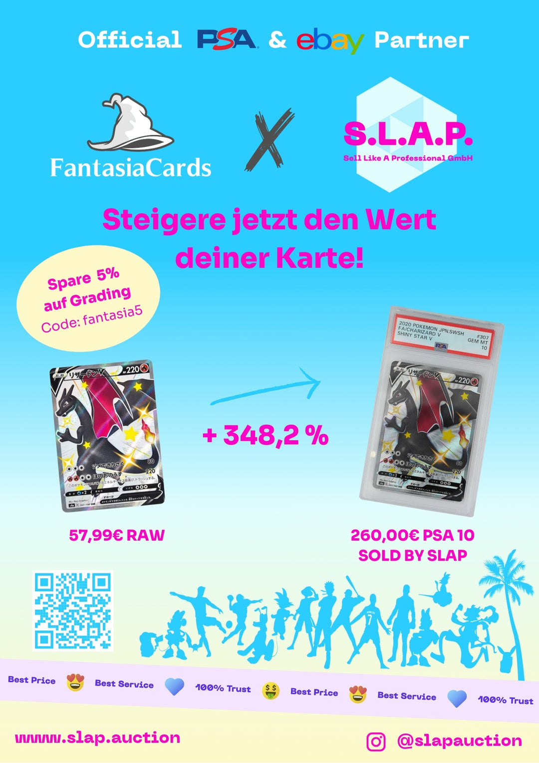 Sende deine Karten an SLAP.AUCTION, der erste deutsche Partner von PSA und günstigste Anbieter von PSA-Grading in ganz Deutschland.